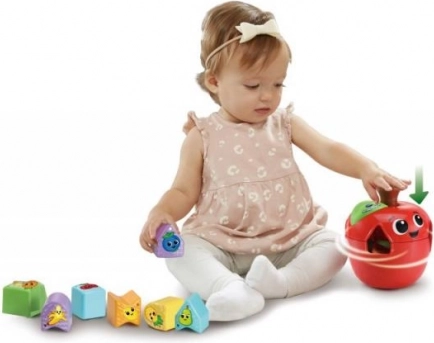 Veselé jablko vkládačka VTECH promění učení tvarů a ovoce v radostnou hru. Díky udržitelnému zpracování z 90 % recyklovaných materiálů je nejen bezpečné a odolné, ale také šetrné k přírodě. Děti vybírají správné výřezy a vkládají 10 barevných tvarů do jablíčka, čímž si procvičují pozornost i trpělivost.