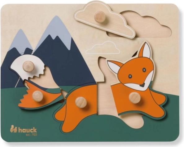 Dřevěná skládačka HAUCK Fox zaujme harmonickými barvami a přátelským designem zvířátka, které děti rády skládají znovu a znovu. Praktické knoflíky na dílcích usnadňují uchopení malými ručkami a motivují k samostatné hře. Udržitelný původ dřeva s certifikací FSC® zajišťuje bezpečnou a šetrnou volbu pro vaši domácnost.