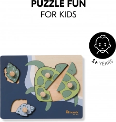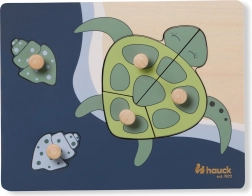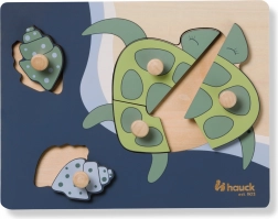 Objevte roztomilé dřevěné puzzle s motivem želvy od značky HAUCK – ideální první skládačku pro nejmenší. Díky praktickým úchytům se dílky snadno drží a vkládají na místo. Hra podporuje jemnou motoriku, koordinaci ruka-oko, rozpoznávání tvarů a sou-středění. Vyrobeno z dřeva s certifikací FSC s bezpečnými zaoblenými hranami a v harmonických barvách přívětivých pro děti.
