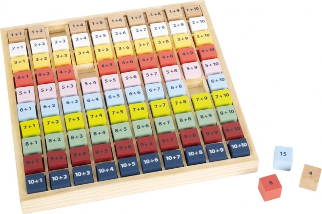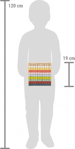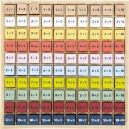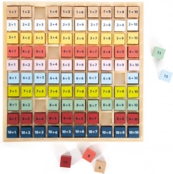 Každá kostka obsahuje jednoduchý příklad sčítání a z druhé strany správnou odpověď. Děti tak mohou pracovat nezávisle, ověřovat si výsledky a posilovat sebedůvěru v matematice. Tabulka je vyrobena z odolného 100% FSC® dřeva, které je šetrné k přírodě a příjemné na dotek.
