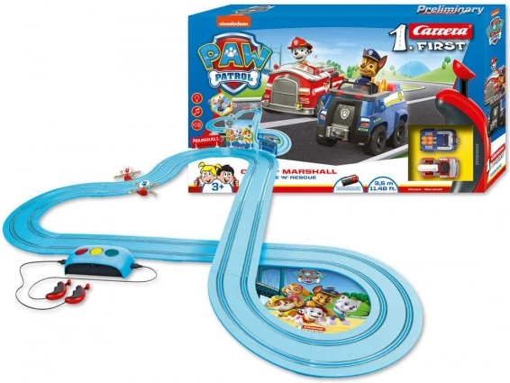 Autodráha Carrera FIRST s motivem Tlapková patrola je perfektní volba pro děti od 3 let. Díky jednoduchému analogovému systému, robustnímu provedení a napájení na baterie si malí závodníci užijí bezpečnou a dlouhou jízdu. Interaktivní napájecí díl přidává zvukové a světelné efekty a zábavné minihry, které udrží pozornost a rozvíjejí koordinaci.