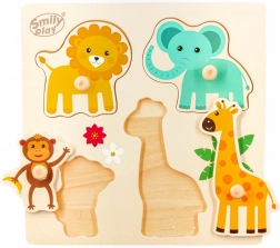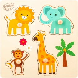 Tato dřevěná vkládačka obsahuje čtyři dílky se zvířátky a pevnou desku s přesně tvarovanými otvory. Každý dílek má pohodlný úchyt, díky kterému se dětem snadno manipuluje a učení je přirozené a zábavné.