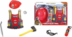 Staňte se hrdinou se sadou hasiče pro děti, která obsahuje vše potřebné pro pestrou hru na hasiče: kamizolu, přilbu, sekerku, brýle, hasicí přístroj, páčidlo a odznak.