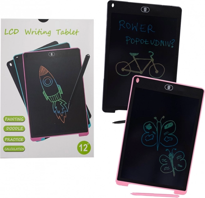 Barevný kreslicí tablet 12" pro děti se stylusem, rychlým mazáním a zámkem proti smazání. Lehký, zábavný a ideální pro kreativitu. Baterie v balení.