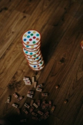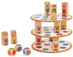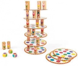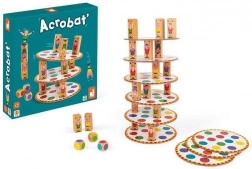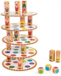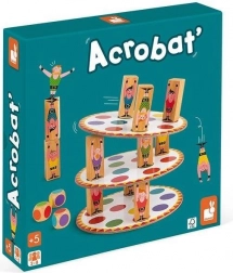 Postupně házejte třemi kostkami, rozmísťujte tři akrobaty na barevná pole dle hodu a stavte další patro své věže. Každý hráč přidává další úroveň – kdo věž shodí, prohrává. Jednoduchá pravidla, napětí do posledního tahu a skvělý trénink trpělivosti i rovnováhy.