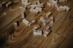 - Dřevo (figurky a kostky), pevný karton (plata)