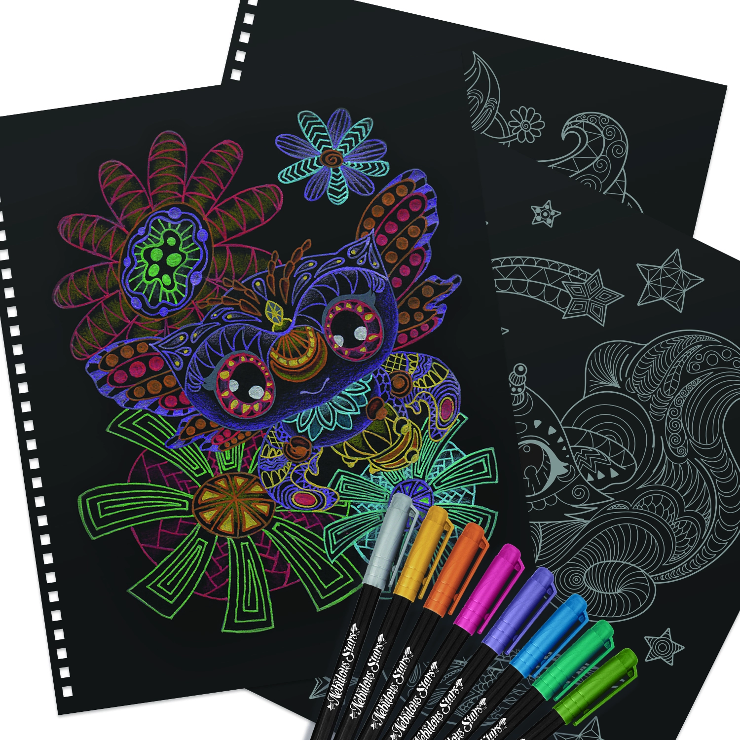 Ponořte se do kreativního světa NEBULOUS STARS a nechte metalické barvy vyniknout na hlubokém černém podkladu. Omalovánky Isadora kombinují stylové ilustrace, kvalitní papír a 8 metalických gelových fixů, které vytvářejí působivé lesklé efekty. Ideální pro děti i začínající umělce, kteří chtějí relaxovat a současně rozvíjet svou fantazii.