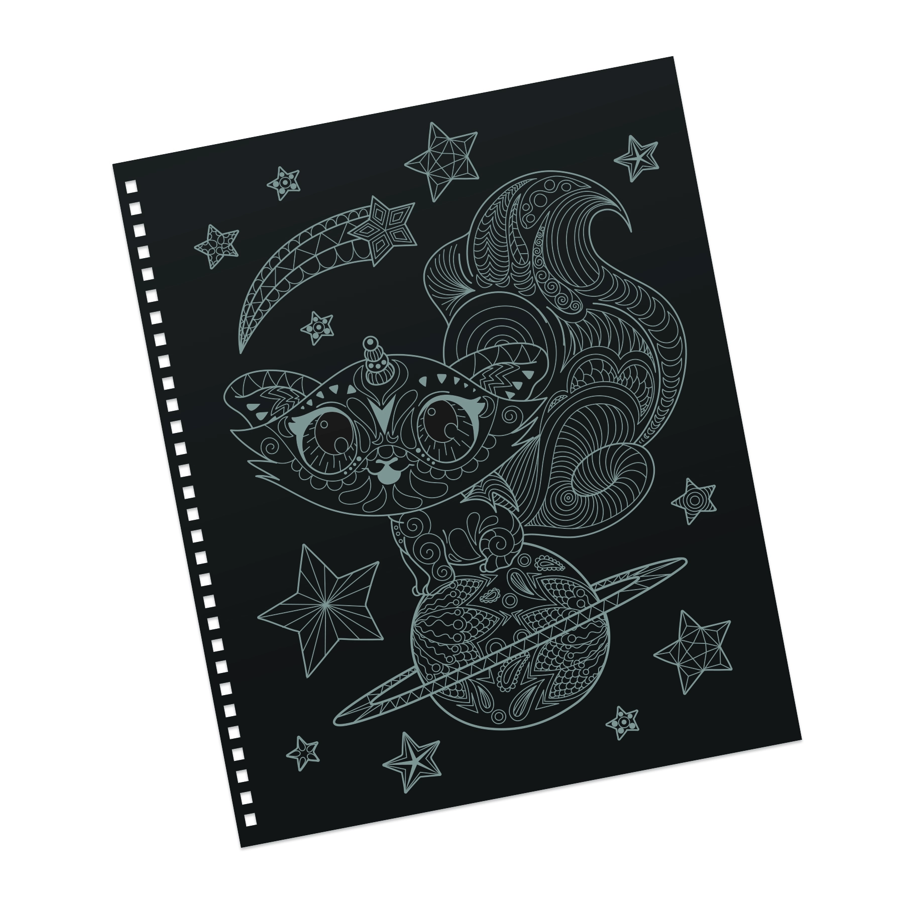 Černé listy s detailními obrysy zvířat a fantazijních motivů usnadňují vybarvování bez nutnosti skicování. Ideální pro rychlý start i relax.