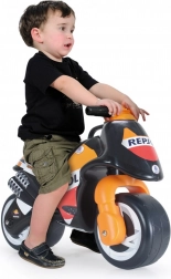 Stylové dětské odrážedlo motorka v černo-oranžovém designu REPSOL podporuje rozvoj rovnováhy, koordinace a jistoty při prvních jízdách. Díky širokým kolům a nízko posazenému sedlu je jízda stabilní a pohodlná na různých površích.