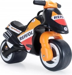 Lehké a stabilní odrážedlo ve stylu závodní motorky s oficiální licencí REPSOL potěší malé jezdce od 18 měsíců. Široká kola pro lepší stabilitu, ergonomické sedlo a otočné přední kolo pro snadné řízení zajišťují pohodlnou a bezpečnou jízdu doma i venku. Trvanlivé IML nálepky a odolná konstrukce zaručují dlouhou životnost, praktické madlo pro přenášení usnadní manipulaci.
