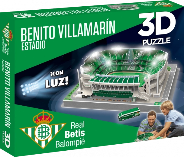 Svítící 3D puzzle představující fotbalový stadion Benito Villamarín, domovský stadion klubu FC Real Betis. Bez potřeby lepidla nebo nůžek, ideální pro všechny fotbalové nadšence.