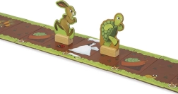 Roztomilé dřevěné figurky zajíce a želvy podporují dětskou představivost a dělají ze hry atraktivní zážitek.