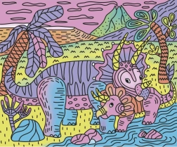Tato jedinečná sada s tematikou dinosaurů nabízí kreativní zážitek pro malé umělce. S pomocí speciálního štětce, který má zásobník na vodu, mohou děti postupně malovat a sledovat, jak krásné barvy ožívají na papíře. Každý obrázek je detailně znázorněn a děti se naučí, jak zabránit míchání barev. Po dokončení lze obrázky zarámovat do přiložené krabičky, což dodá dětským výtvorům punc originality.