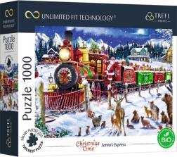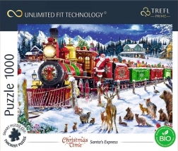 Vánoční motiv Christmas Time: Santův express přináší pohodovou sváteční atmosféru v prémiové kvalitě TREFL. Technologie Unlimited Fit Technology (UFT) umožňuje spojovat různé UFT puzzle do jedné velké koláže – hranice určujete vy. Hotové obrázky lze bezpečně přemísťovat, protože dílky do sebe přesně zapadají a drží pohromadě.