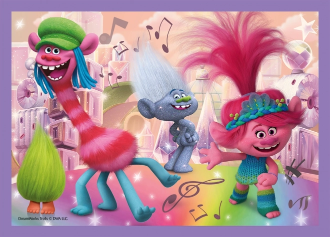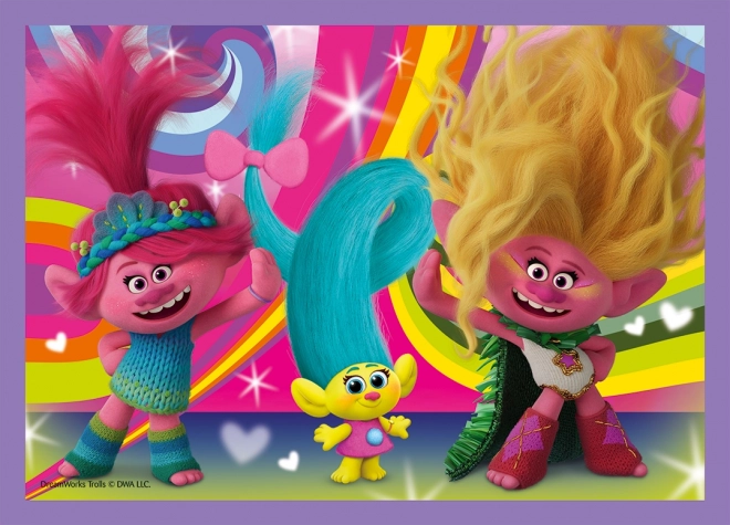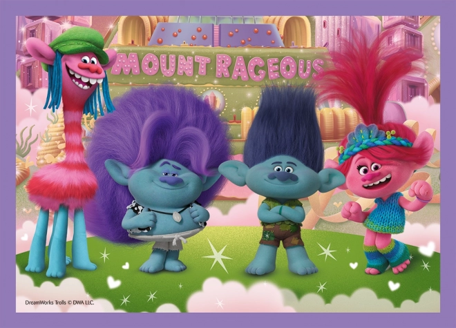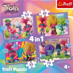 Užijte si zábavu s dětmi díky sadě čtyř skládaček od značky Trefl s motivem filmu Trollové 3: Barevné dobrodružství. Progresivní puzzle nabídnou 4 různé obtížnosti (35, 48, 54 a 70 dílků) a po složení mají každý rozměr cca 28,5 × 20,5 cm.
