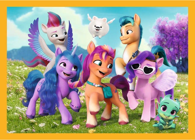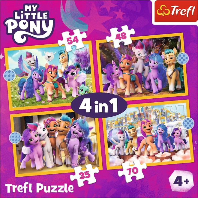 Barevná sada 4 v 1 puzzle s motivy MY LITTLE PONY potěší malé milovníky skládaček. Čtyři samostatné obrázky o rozměru 285 × 205 mm a různý počet dílků (35, 48, 54, 70) přináší zábavu i postupnou výzvu. Vyrobeno v Polsku z ekologických materiálů, vhodné pro děti od 4 let.