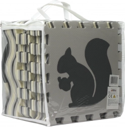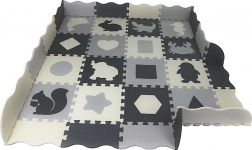 Měkká a bezpečná pěnová podložka s motivy zvířátek a tvarů pro děti od 2 let. Díly se snadno propojují, vytvářejí izolující a tlumící povrch, jsou omyvatelné a mají vroubkovaný protiskluzový povrch. Balení obsahuje 16 čtvercových dílů, 16 okrajů a 4 rohy pro čisté zakončení hrací zóny.