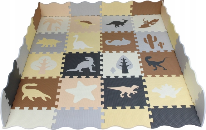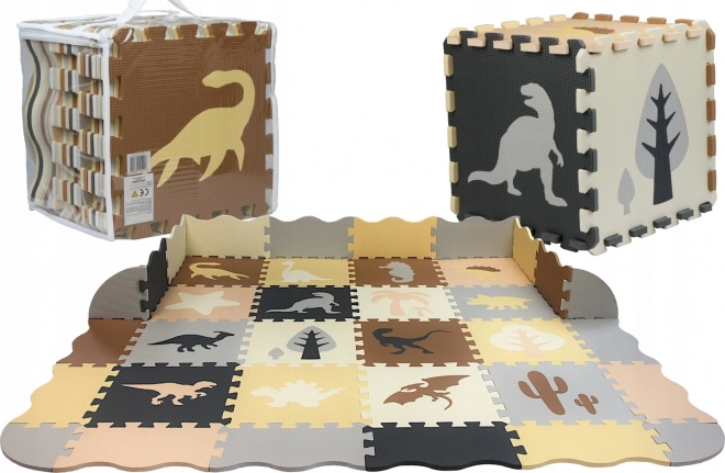 Tato EVA pěnová podložka s dinosaury promění podlahu v bezpečné a zábavné hřiště. Díky extra měkkému materiálu a tloušťce 0,9 cm chrání před chladem, tlumí pády i hluk a udržuje pohodlí při hře. Neutrální barvy skvěle zapadnou do moderních interiérů.