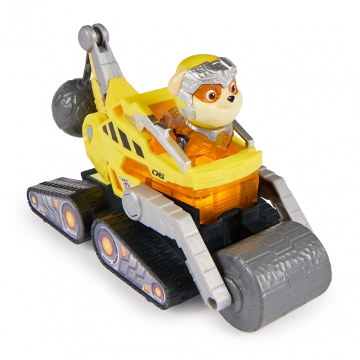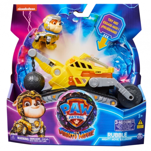 Rubble je oblečený do své žluté filmové uniformy s průsvitnými detaily a helmou. Stačí posadit figurku do kabiny a automaticky se rozsvítí světla na různých místech vozu – včetně svítících tlapek. Ideální pro hraní oblíbených scén i rozvoj představivosti a motorických dovedností.