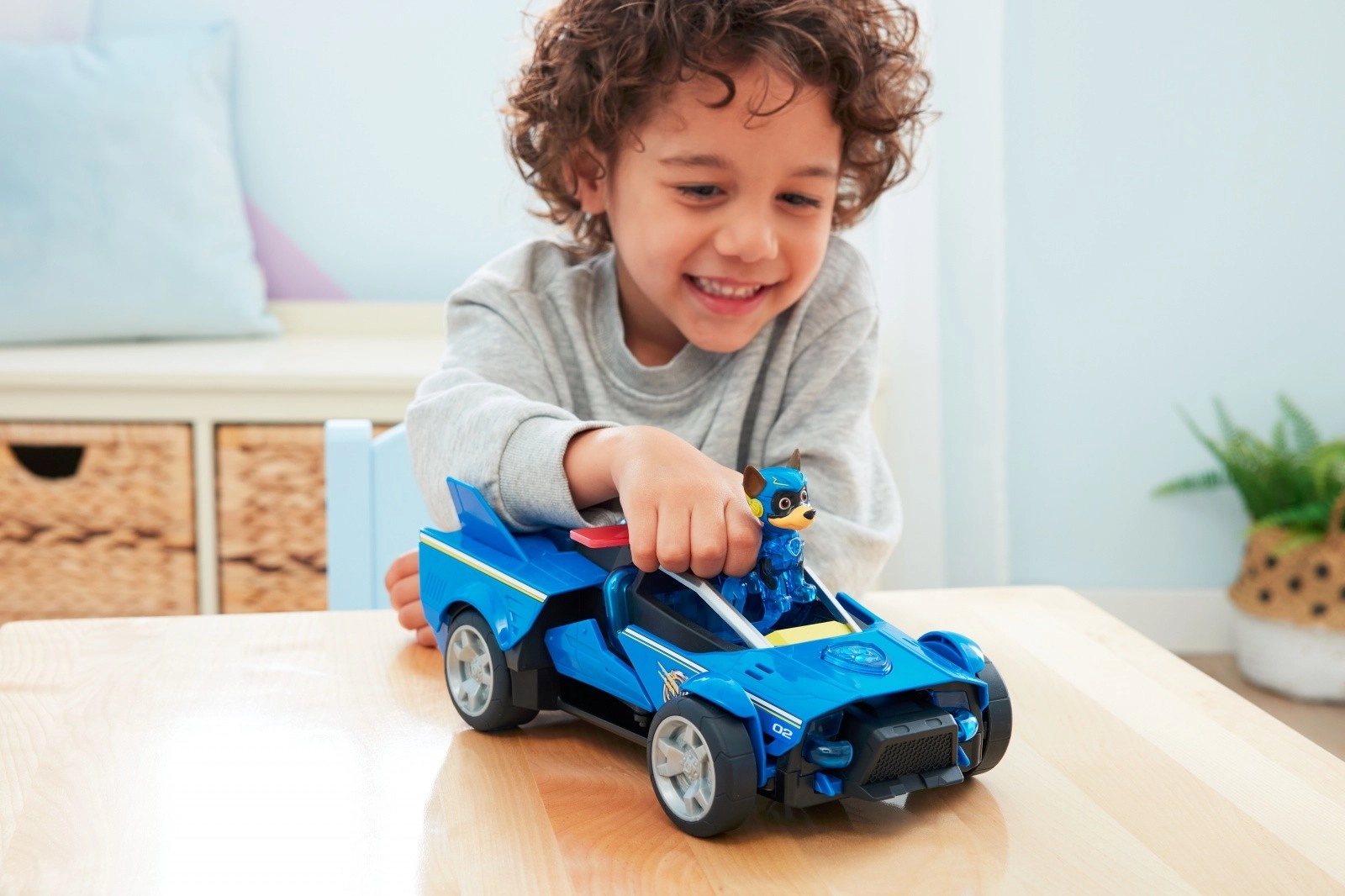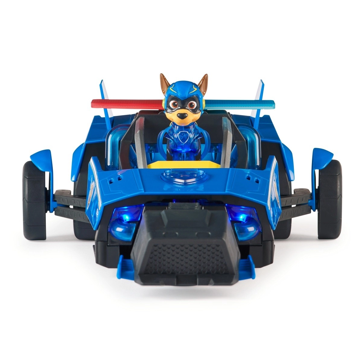Chaseovo supermoderní policejní vozidlo přináší dětem akční zážitky jako z velkého plátna. Po posazení figurky do kokpitu se aktivují blikající modrá světla na autě i na tlapkách hrdiny. Jediným stiskem spustíte transformaci do záchranného režimu – vozidlo se prodlouží na více než 38 cm a rozšíří až na 20 cm pro ještě dynamičtější jízdu.