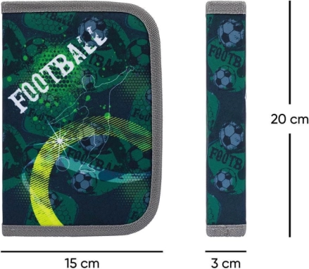Penál se pyšní stylovým designem s fotbalovými motivy, který osloví všechny mladé sportovní nadšence.