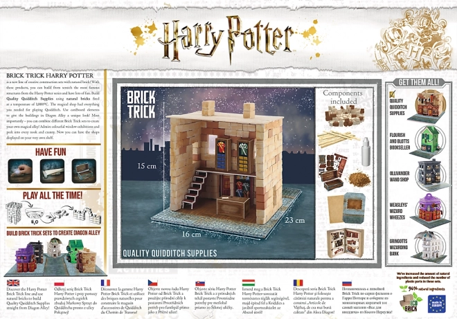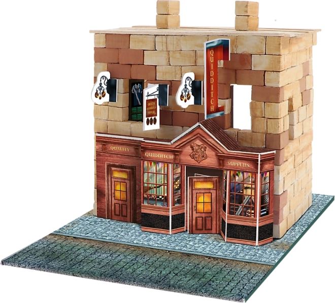 Tato stavebnice vás přenese přímo do světa Harryho Pottera. Můžete složit autentický model obchodu s potřebami pro famfrpál, kde se kupují košťata a další vybavení. Použijte kartonové dekorační prvky, přírodní mech a kameny k vytvoření jedinečné atmosféry Příčné ulice.