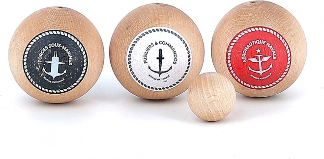 Stylová sada na tradiční hru pétanque v designu inspirovaném francouzským námořnictvem. Obsahuje 6 herních koulí, cílovou kuličku a praktický látkový pytlík. Vyrobeno z masivního lakovaného dřeva, ekologicky a šetrně k životnímu prostředí. Ideální pro 2–6 hráčů, vhodné od 5 let, vyrobeno ve Francii.