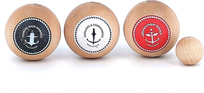 Sada je vyrobena z masivního lakovaného dřeva, což zaručuje příjemný úchop, dlouhou životnost a bezpečné hraní pro děti od 5 let. Vznikla ve spolupráci s francouzským námořnictvem a byla vyrobena ekologicky, šetrně k přírodě – ideální volba pro zodpovědné hraní.