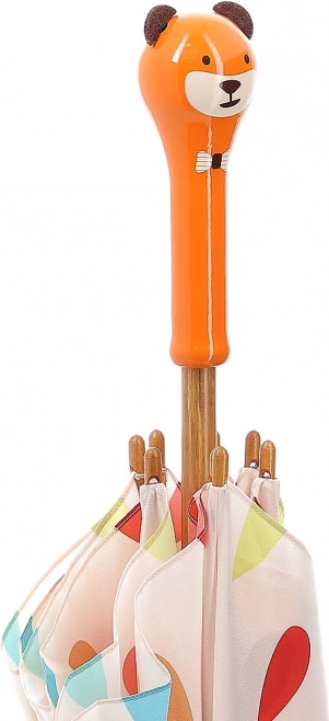 Lakovaná dřevěná rukojeť ve tvaru medvídka je příjemná do ruky a promění každý déšť v zábavu.