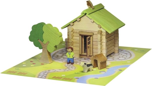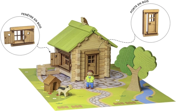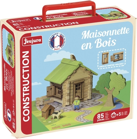 Objevte kouzlo klasických dřevěných stavebnic JEUJURA. Díly z bukového a borovicového dřeva do sebe přesně zapadají a umožňují dětem stavět realistické domky se střechou, dveřmi, okny i okenicemi. Součástí je i pevná podložka pro stabilní hraní a vystavení.