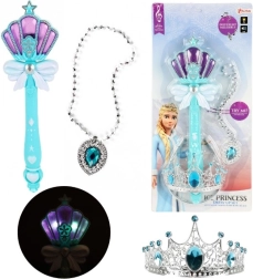 Sada ledová princezna – kouzelná hůlka, korunka a náhrdelník se světlem a zvukem