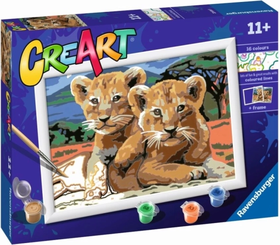 Objevte kreativní sadu CreArt pro děti s motivem Malá lvíčata. Malování podle čísel je snadné, zábavné a přináší relax i radost z tvoření. Vybarvujte očíslovaná pole správnými barvami a vytvořte si krásný obraz, který si hned zarámujete.