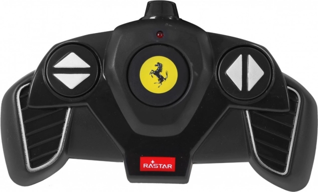 Dálkový ovladač s logem Ferrari umožňuje snadné a přesné ovládání vozu. Funkce ovládání směru a ergonomický design jej činí ideálním pro fanoušky dálkově ovládaných modelů.