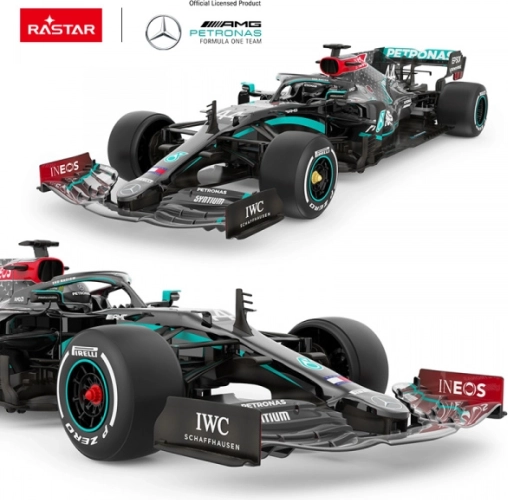 Užijte si závodní vzrušení s autentickým modelem MERCEDEs-AMG F1 W11 EQ na dálkové ovládání v měřítku 1:12. Precizní zpracování s logy týmu, startovními čísly a aerodynamickými prvky potěší fanoušky F1. Spolehlivé ovládání na 2,4 GHz, gumové pneumatiky šetrné k podlaze a zábava, která rozvíjí jemnou motoriku a koordinaci ruka-oko.