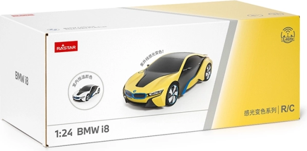 RASTAR dálkově ovládaný model BMW i8 je futuristické auto s unikátním lakováním, které mění barvu ze bílé na žlutou při použití slunečního nebo LED světla. Toto licencované BMW kombinuje nejnovější technologie s věrohodně reprodukovanými detaily skutečného vozu.