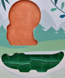 Děti mohou vytvářet příběhy se zvířaty jako je žirafa, lev, opice a aligátor, což podporuje jejich kreativitu.
