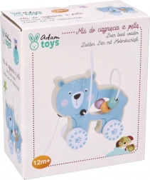 Dřevěná hračka na kolečkách s medvídkem zachytí pozornost a povzbudí dítě k pohybu.