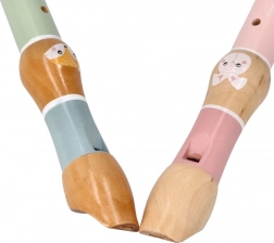 Flétna je vyrobena z kvalitního dřeva, což zaručuje dlouhou životnost a příjemný zvuk. Má několik otvorů pro prsty, což dětem umožňuje hrát různé tóny a melodie.