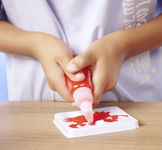 Každá lahvička má jemný aplikátor, který umožňuje vyplňovat detaily ve formách s maximální kontrolou. Děti tak snadno vytvoří čisté, výrazné tvary a linky.