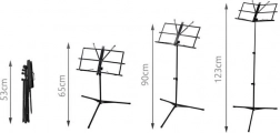 Stojan na noty umožňuje pohodlné používání ve stoje i v sedě díky plynule nastavitelné výšce až na tři úrovně.