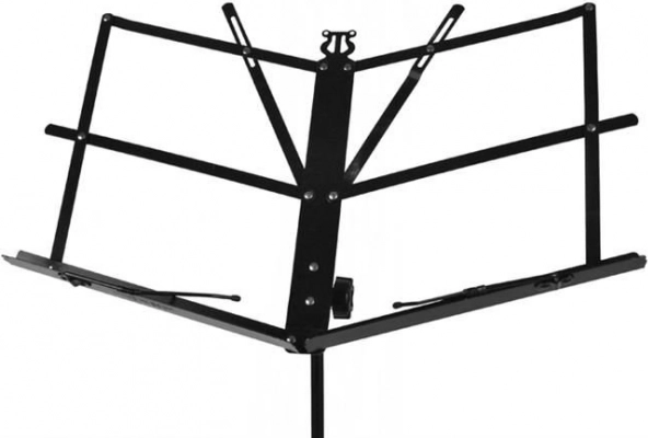 Tento malovaný kovový stojan na noty je vybaven trojnohou základnou a regulovatelnou výškou, což umožňuje jeho použití v stoje i v sedě. Stojan lze dokonce umístit na stůl při nastavení na nejnižší výšku. Sklopný pult se snadno přizpůsobí vašim potřebám, zatímco nastavitelný úhel sklonu zabraňuje zavírání not. Vhodný pro profesionály i amatéry.