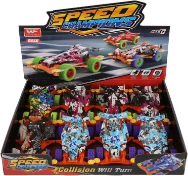 Děti si mohou vybrat mezi čtyřmi barevnými variantami, což dělá tento set skvělým pro sběratele. Každé autíčko je narážecí, což přidává na zábavě tím, že se žádná překážka nestane neřešitelnou.
