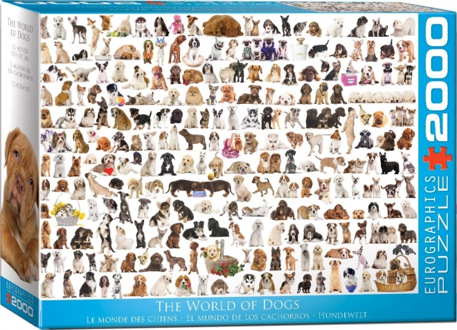 Užijte si výzvu s puzzle EUROGRAPHICS Svět psů o celkovém rozměru 99,7 x 67,6 cm. Díky unikátní raznici, která nekopíruje standardní mřížku, mají dílky neobvyklý tvar a rohy a hrany nejsou vždy v jedné ose, což zvyšuje obtížnost skládání.