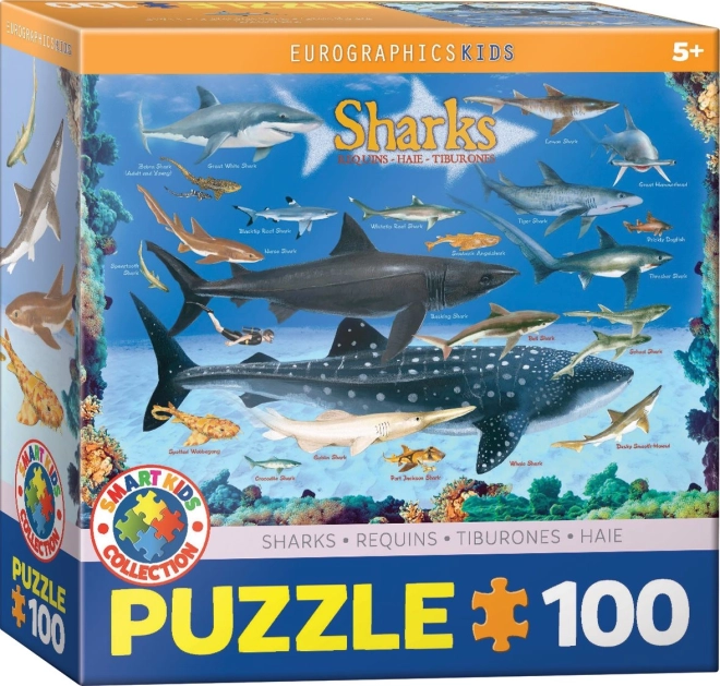 Dejte svým dětem příležitost prozkoumat fascinující svět žraloků s tímto poutavým puzzle. Díky 100 dílkům nabízí tento produkt výzvu odpovídající jejich věku a zajišťuje, že učení a hra je zábavná.
