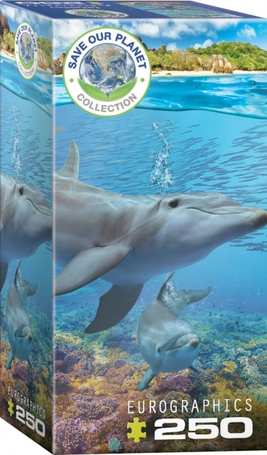 Toto puzzle zobrazuje okouzlující scénu s delfíny, která nám má připomenout pozoruhodnou krásu a nezbytnost ochrany našeho životního prostředí.