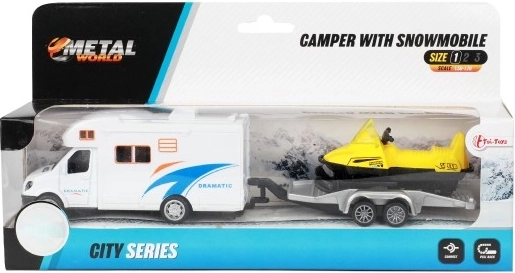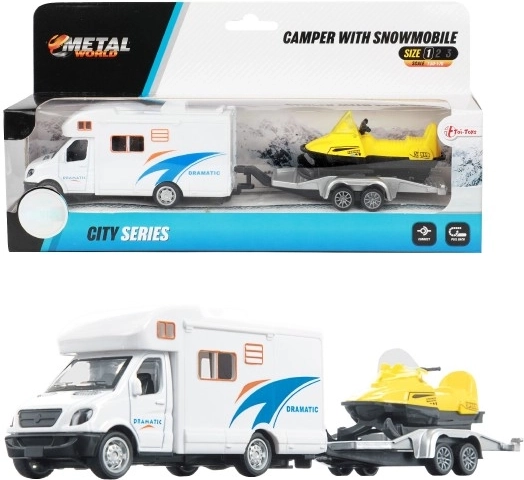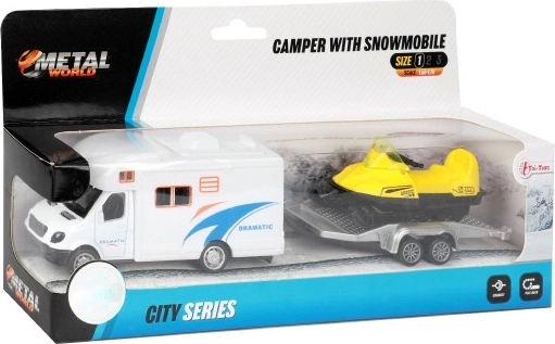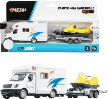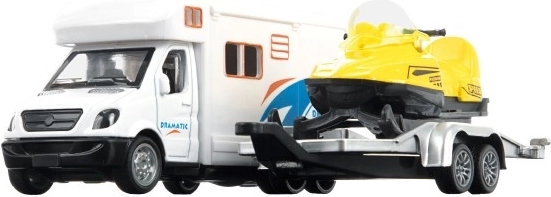 Dopřejte svým dětem hodin zábavy s naším karavanem se sněžným skútrem. Tento detailně zpracovaný model nabízí nejen pohyblivou ložnou plochu skútru, kterou lze naklonit a uzamknout, ale také realistické prvky na karavanu, jako jsou gumové pneumatiky.