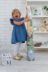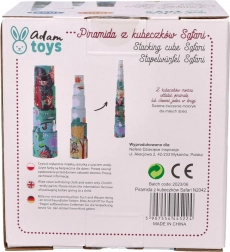 Pyramida z kelímků Safari nabízí dětem zábavu a zároveň rozvíjí jejich schopnosti. Sada obsahuje kelímky různých velikostí, které lze snadno skládat do výšky až 96 cm. Každý kelímek je zdoben pestrými ilustracemi zvířat, které stimulují dětskou představivost.