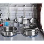 Součástí sady je hrnec, pánev, poklice a čtyři kuchyňské lžíce. Děti mají hned vše, co potřebují k „vaření“ oblíbených dobrot.