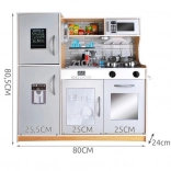 Dopřejte dětem vlastní moderní kuchyň se spoustou realistických prvků. LED podsvícení lze umístit pod skříňku, do skříňky nebo do „trouby“ a vytvořit tak autentickou atmosféru. Při otáčení pokroutků plotýnek se ozývá charakteristické „klik“, což dává hraní nový rozměr.