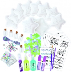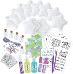 - 10 hvězd z papírové hmoty, 5 mini lahviček, 2 lahvičky s barvou, lahvička s inkoustem ve spreji